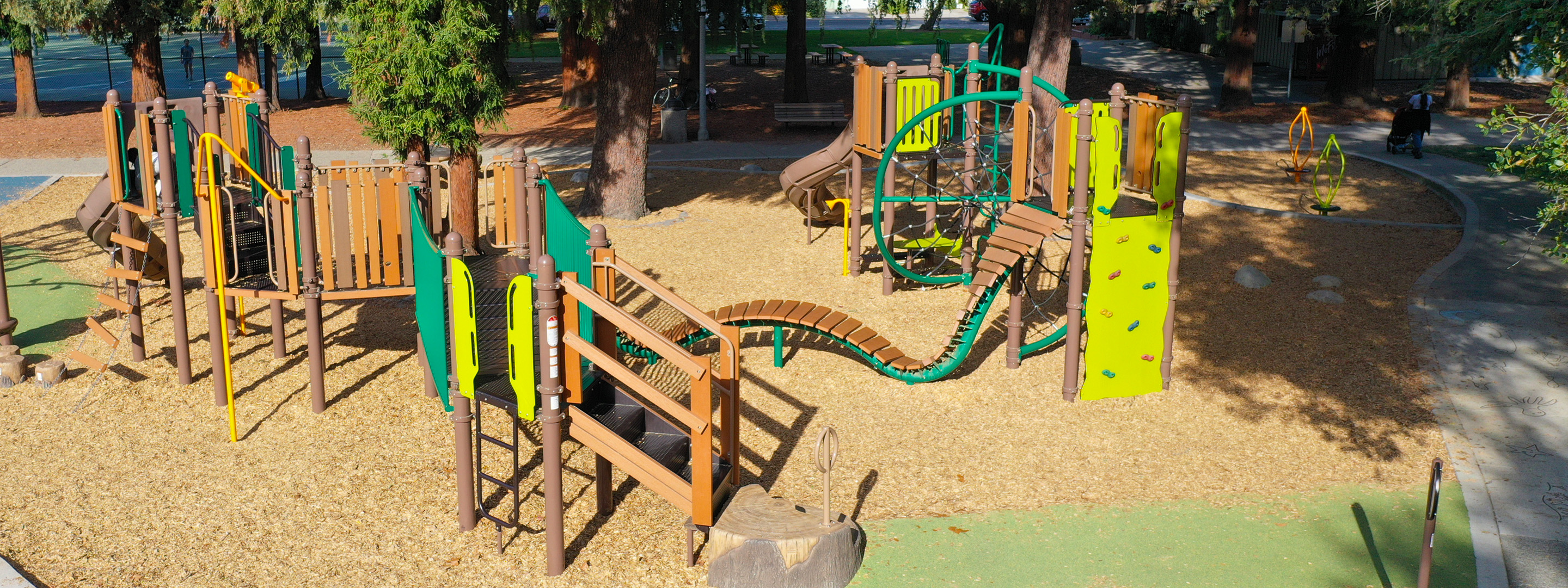This elementary age playground located in the eastern half of the park contained sand and worn play equipment installed in 1954. The sand was replaced with engineered wood fiber and the play equipment was replaced with traditional age-appropriate play equipment. ADA improvements were made to the existing path of travel as well.